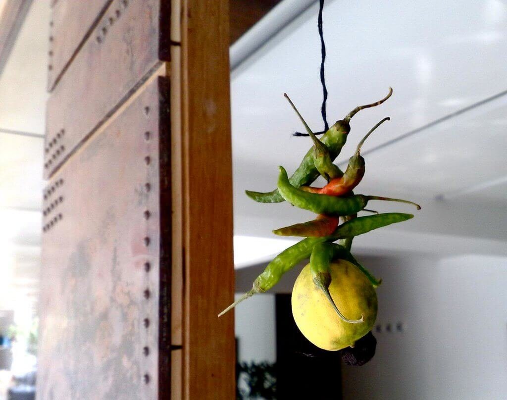 - दरवाजे पर लिंबू-मिर्च लटकाना