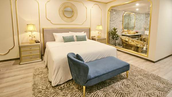 5. बेडरूम में भी फर्नीचर और सामान पर गोल्ड प्लेटिंग की हुई है.
